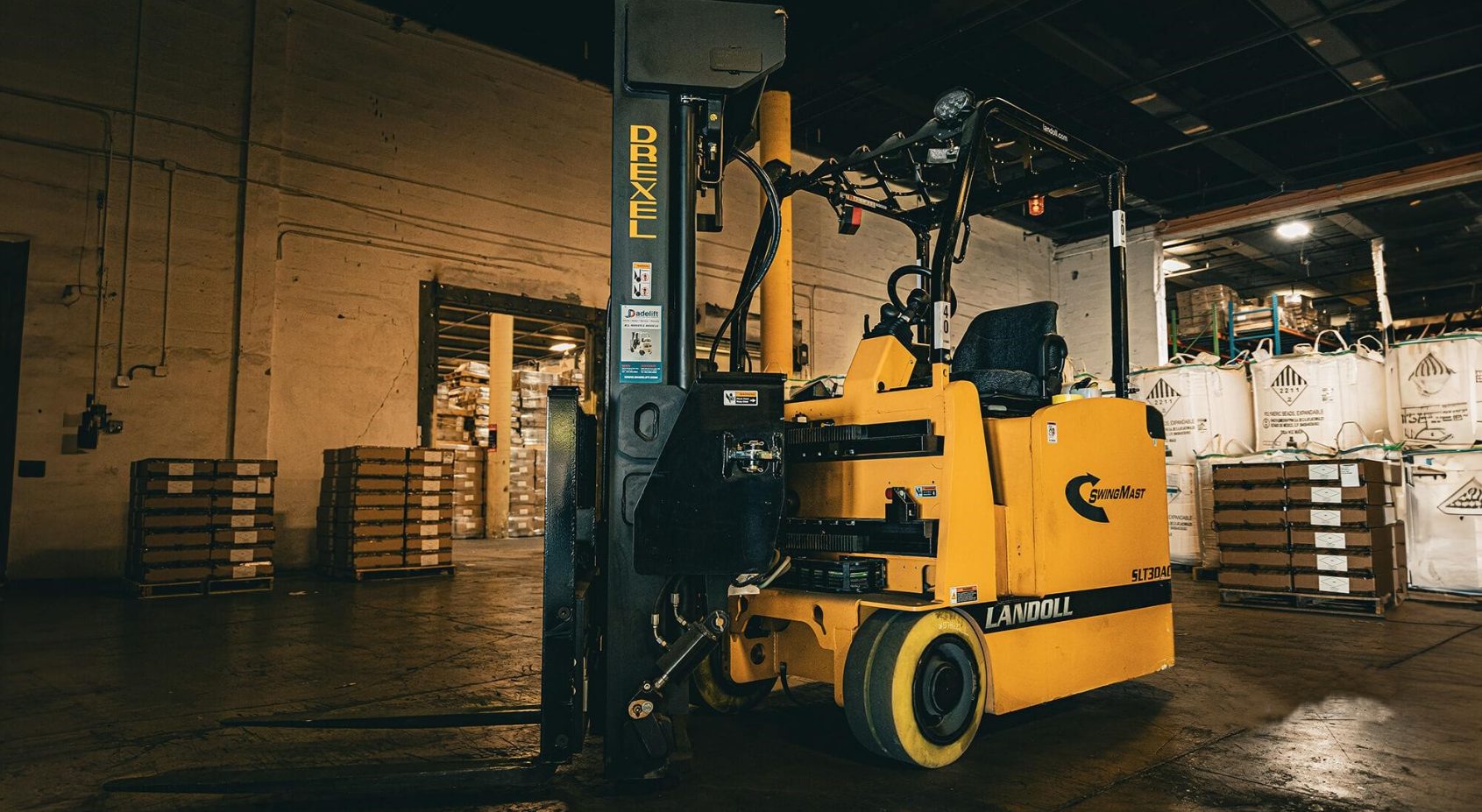 Drexel SLT30AC – Very Narrow Aisle Electric SwingMast Forklift